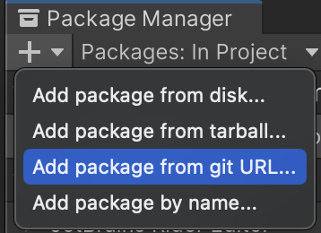 This approach uses Unity’s Package Manager to add the attribute to your project using the repo’s git URL. To do so, navigate to Window > Package Manager in Unity. Then click on the + and select “Add package from git URL”: